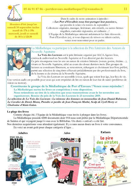 05 46 91 87 86 - portdenvaux.mediatheque17@wanadoo.fr 11
