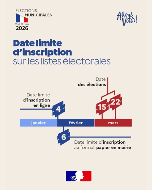 Derniers jours pour s'inscrire en mairie jusqu’à vendredi matin 6 février 2026 Mairie 1 place des hallesPort d’Envaux05.46.91.73.31