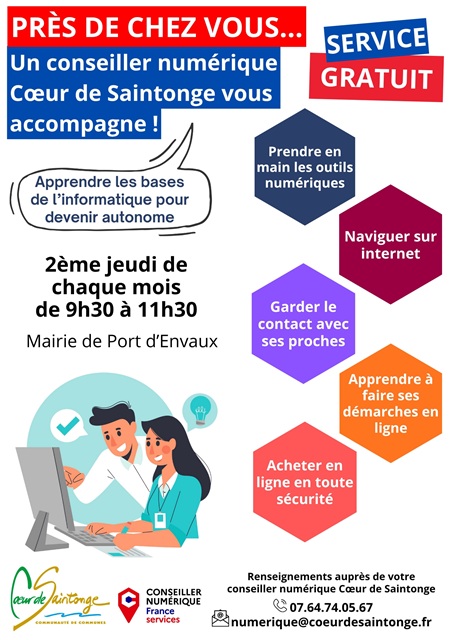 France Services 05.46.73.19.90 – mail : franceservices@coeurdesaintonge.fr