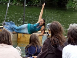 Evelyne Zou et Nico étoile, le duo surprenant de la compagnie "PianO du Lac" ont offert un spectacle surprenant perchés sur un improbable radeau flottant sur la Charente, un univers rempli de dérision et de fantaisie tout en poésie.