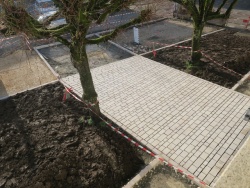 Après le terrassement, les travaux de pavage rondement menés, laissent entrevoir les différents espaces créés.