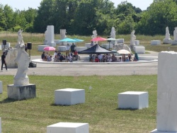 Le public peut maintenant prendre possession des lieux et déambuler parmi plus d'une soixantaine de mégalithes qui traduisent les cultures des cinq continents...