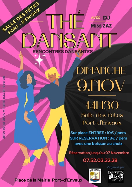 Thé dansant à la salle des fêtes Dimanche 9 novembre 2514h30salle des fêtes de Port d’Envaux Payantsur réservation ou paiement à l’entrée